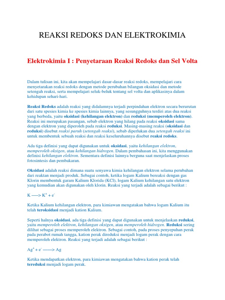 Reaksi elektrokimia beserta contohnya. Soal dan pembahasan reaksi redoks dan elektrokimia 1. Kumpulan soal soal dan pembahasan reaksi redoks dan elektrokimia 1.