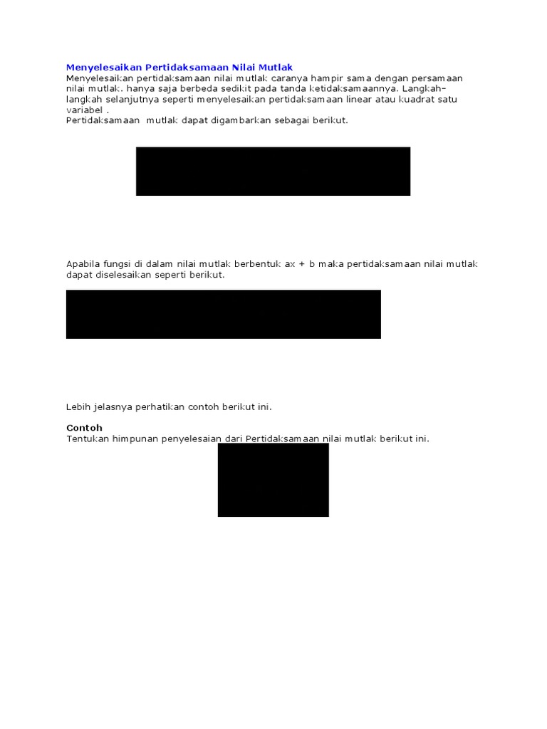 Contoh soal pertidaksamaan nilai mutlak dan penyelesaiannya beserta langkah langkah cara penyelesaian sifat sifat.